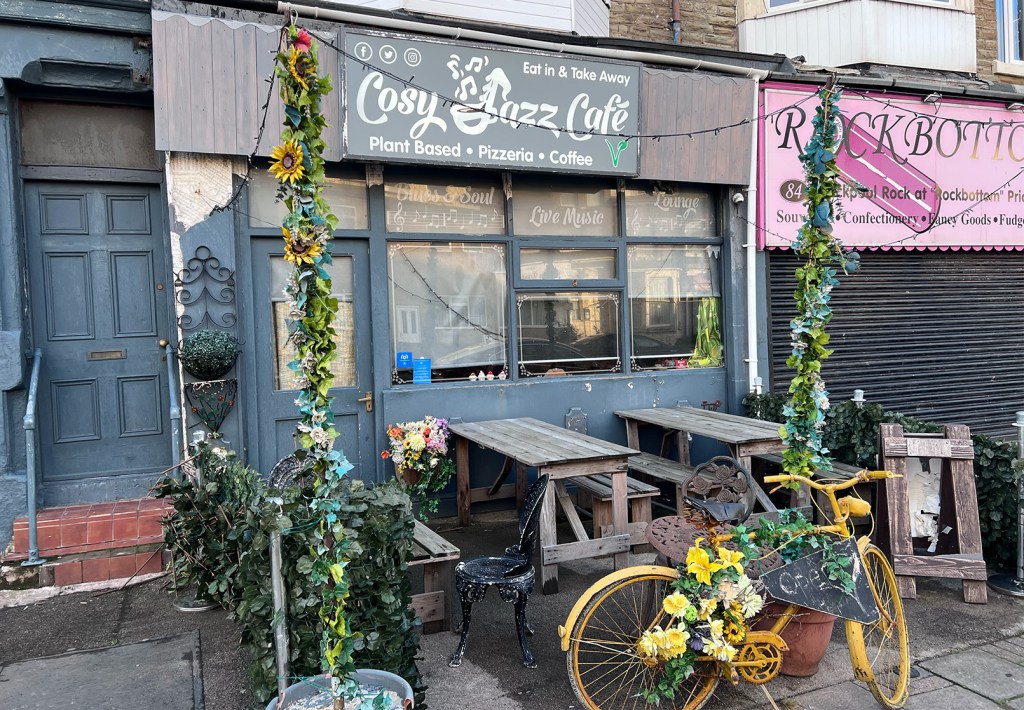 Mark said to meet him in the Cask and Tap before the gig, so I thought to get something to eat before the inevitable pint. I remembered speaking to a guy called Josh, the owner of ‘Cosy Jazz Cafe’, while doing research for a project I worked on a while ago and I’d promised to visit his place next time I was there. It was a 5 minute walk from the hotel, so I made my way.